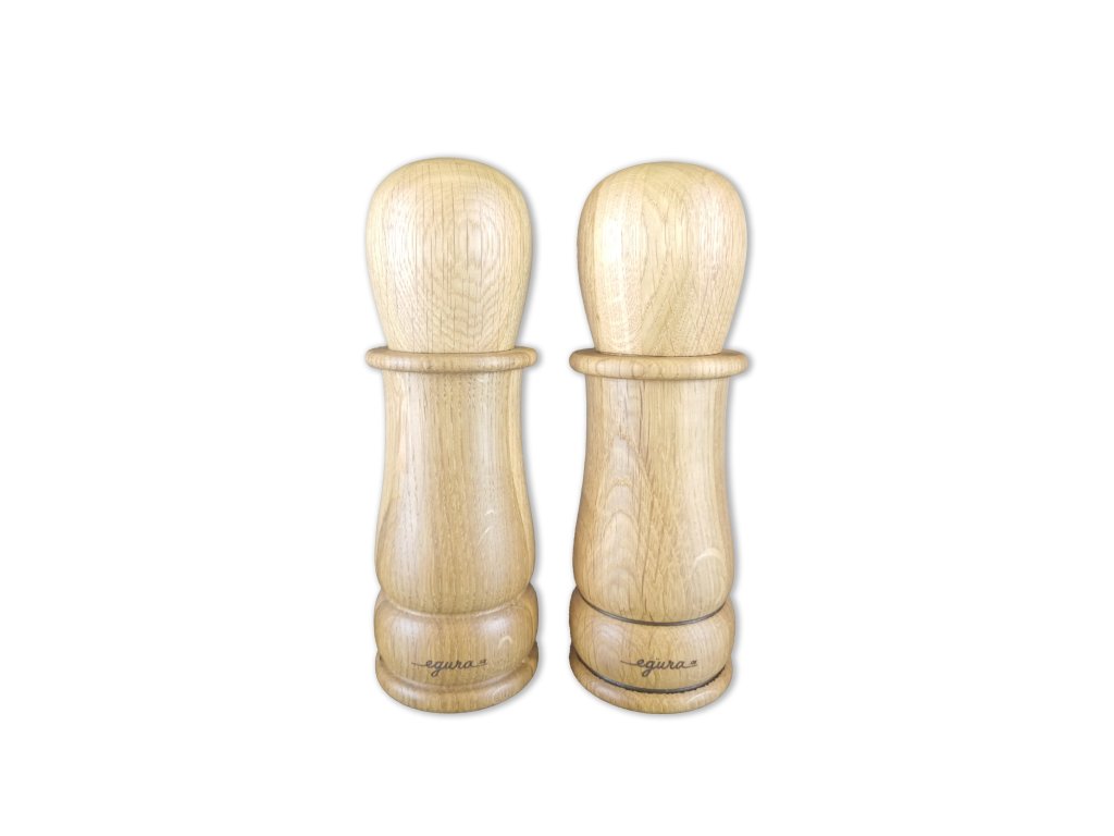 Sada mlýnků na pepř a vločkovou sůl se špičkovou dánskou mechanikou CrushGrind. Stanou se ozdobou každé domácnosti. Jsou vyrobeny z dubového dřeva, ošetřeny speciálním voskovým olejem určeným pro styk s potravinami. Tyto mlýnky dělají radost opakovaně a dlouhodobě. Kdykoliv je použijete, pocítíte kvalitu, poctivou ruční práci, ušlechtilý materiál a originalitu Vašich mlýnků. Žádné jiné totiž nejsou jako ty Vaše. Od sebe je snadno rozeznáte podle slušivého proužku na jednom z nich.