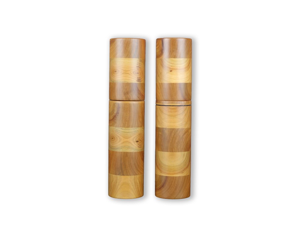 Sada mlýnků na pepř a vločkovou sůl se špičkovou dánskou mechanikou CrushGrind. Stanou se ozdobou každé domácnosti. Jsou robustní, vyrobeny z krásného třešňového dřeva, ošetřeny speciálním voskovým olejem určeným pro styk s potravinami. Tyto mlýnky dělají radost opakovaně a dlouhodobě. Kdykoliv je použijete, pocítíte kvalitu, poctivou ruční práci, ušlechtilý materiál a originalitu Vašich mlýnků. Žádné jiné totiž nejsou jako ty Vaše. Od sebe je snadno rozeznáte podle slušivého proužku na jednom z nich.